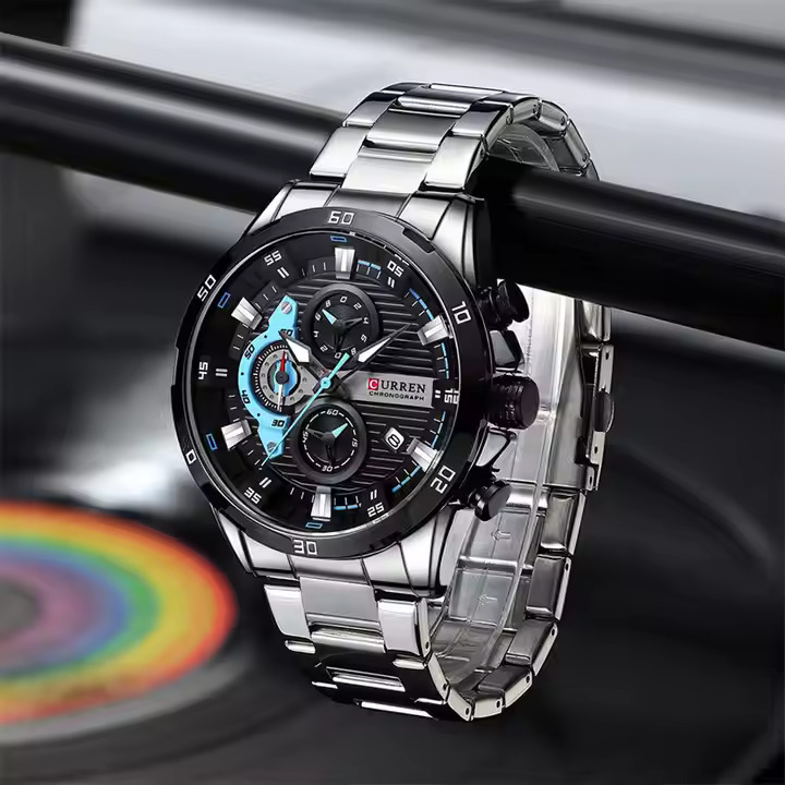 The Curren 8402 is a stylish, 47mm men's chronograph wristwatch featuring a durable alloy case, Hardlex crystal, and stainless steel band. Designed for versatility, this functional, water-resistant (